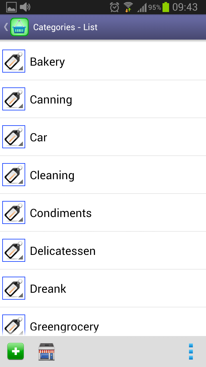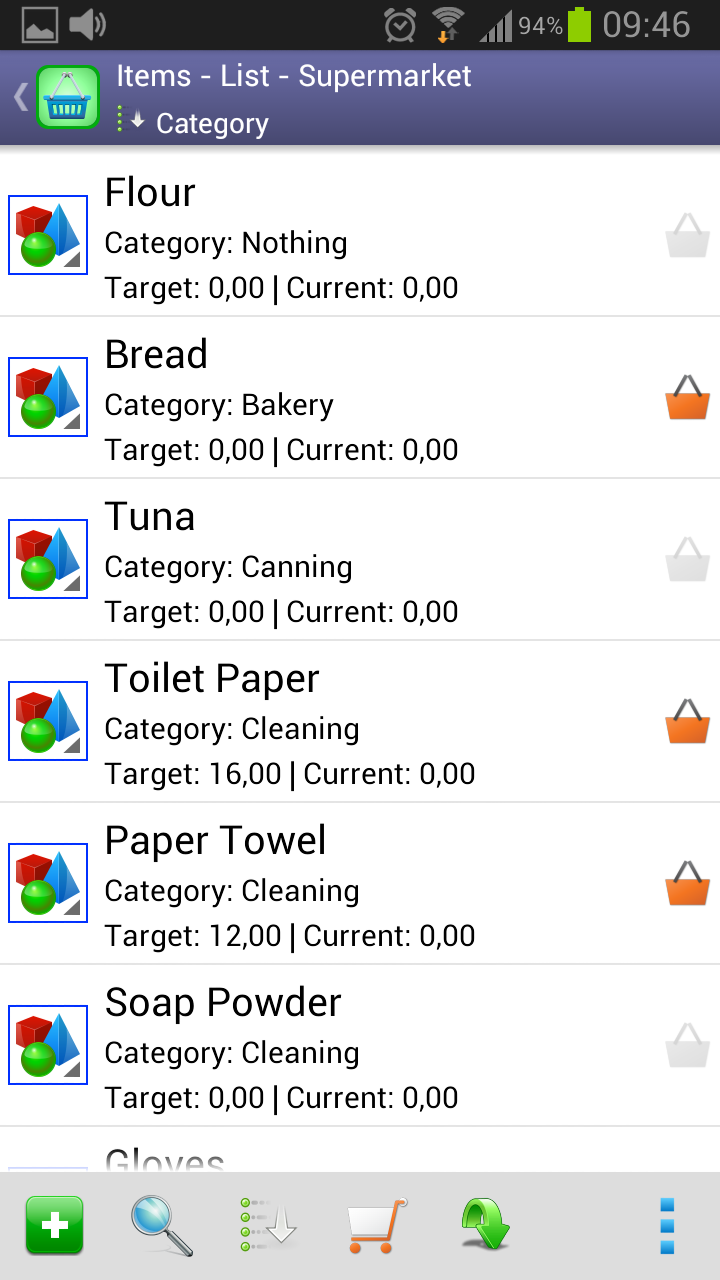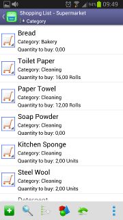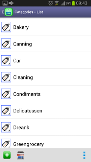CategoriesUseful to group several items.Items with the same category usually are arranged in the same area on supermarkets. Therefore, Perfect Shopping List lets you sort your lists by the category column. |